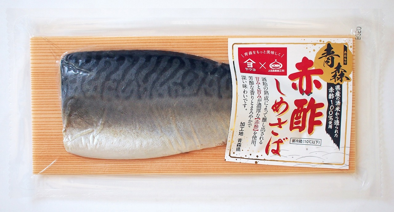 第33回全国水産加工品品質審査会【農 林水産大臣賞】受賞商品。青森県内の酒蔵の酒粕から作られた赤酢を使用したしめさばです。赤酢の豊かな旨みを活かし、芳醇な香りとまろやかで深い味わいに仕上げています。スタミナ源たれで有名な上北農産加工様の赤酢とのコラボ商品です。